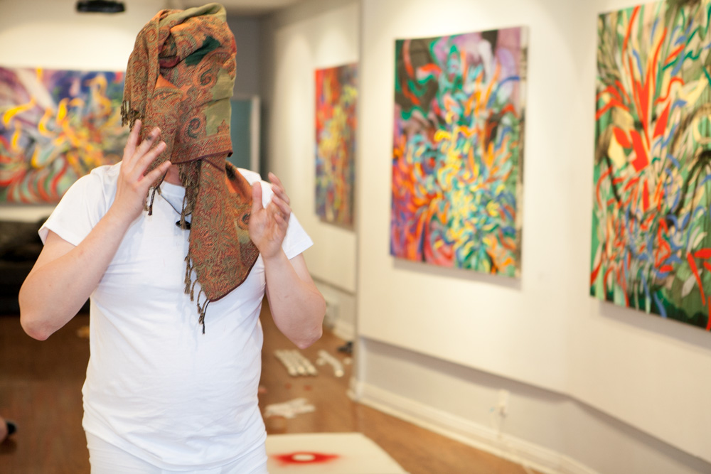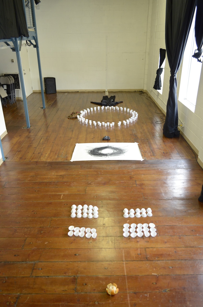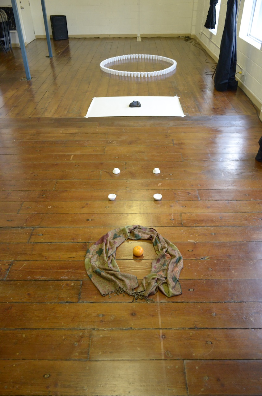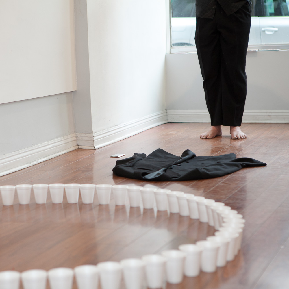 In its original iteration, INTERIOR SONGS also raises questions on the nature and interiority of art. Is it a performance if no one else is present? Can art be created in isolation, outside of a “community”, as well as institutional and audience pressures? What are the criteria to validate it as art? The piece begins in one end of the space (referencing Cage’s 4’33”) and traverses the space by moving into the next song/”room”; each song leaves a trace and transforms the original “room” setting. At the end of the performance, the “rooms” are left as a collective installation piece. People then wander into the space after, and wonder what had transpired to create those traces. The integral video documentation created during the performance becomes one of those residual traces and brackets the voyeurism implicit in the interior.