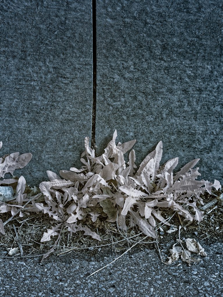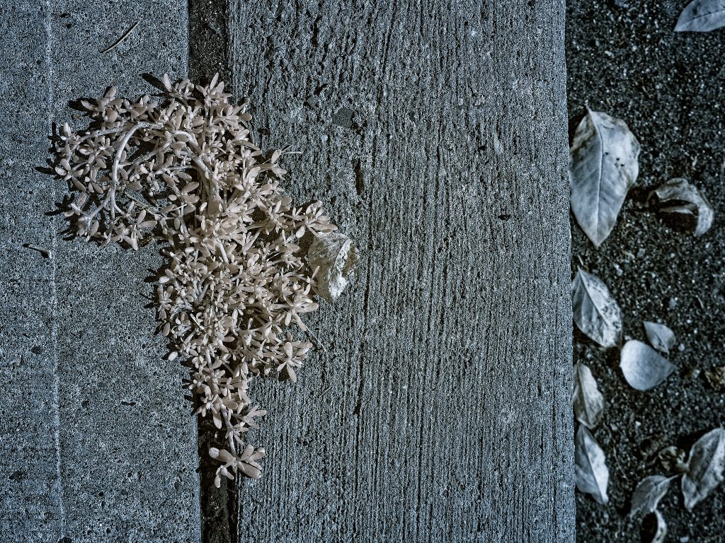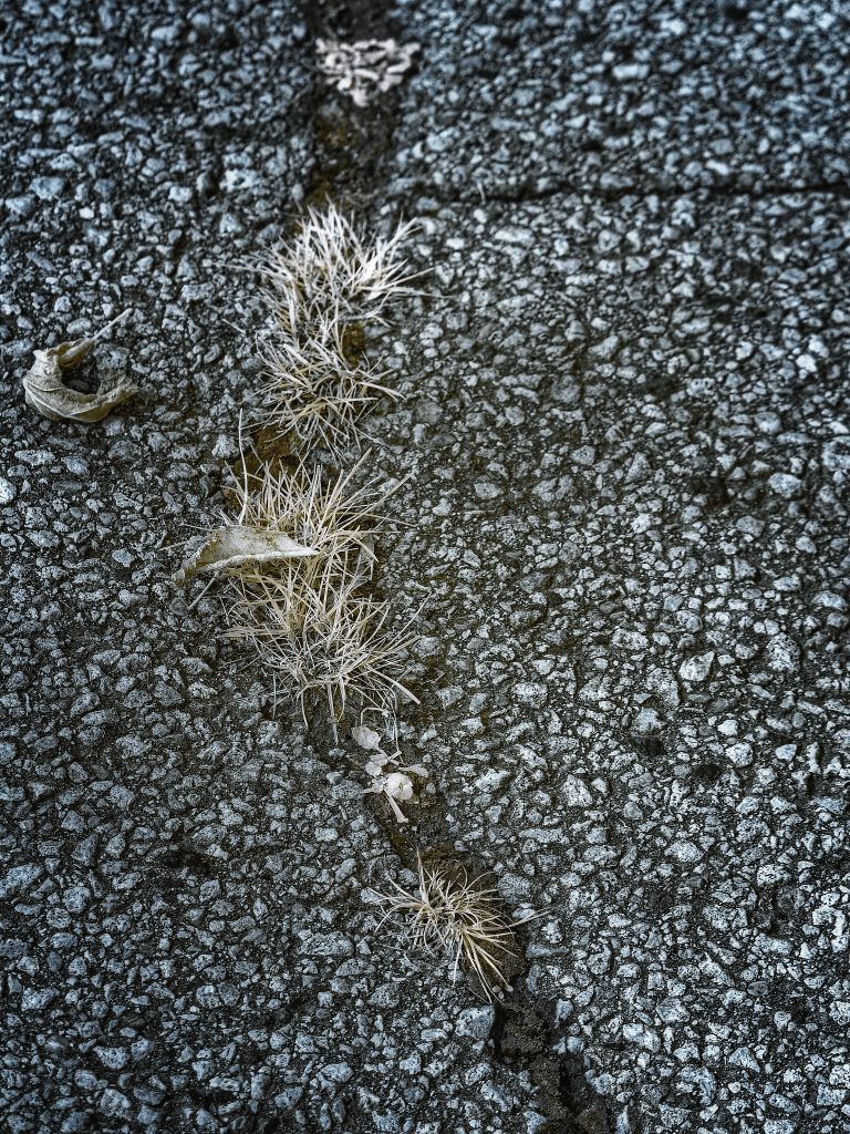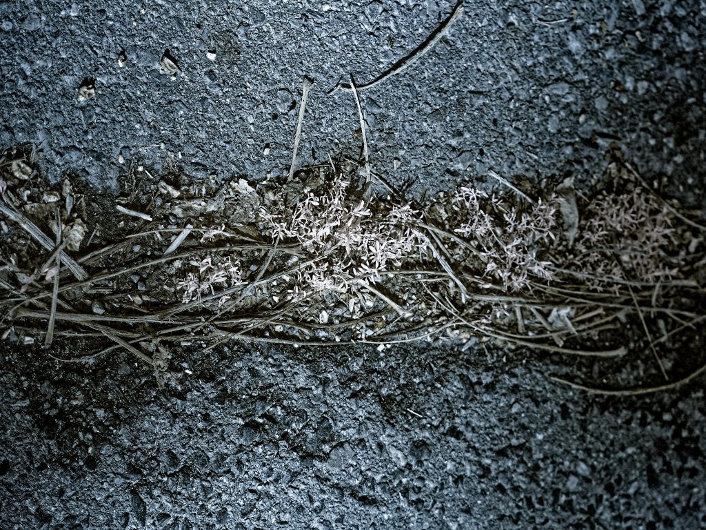 Their ongoing struggle to survive and stubborn tenacity, making their home in the non-spaces of cracks and crevices of impervious urban surfaces, ruptures the smooth polished superficiality of the urban and contemporary zeitgeist. A harsh life, ignored by the well-off, but a struggle no less grand than the romantic landscape photography trope of trees clinging precariously to sides of cliffs.