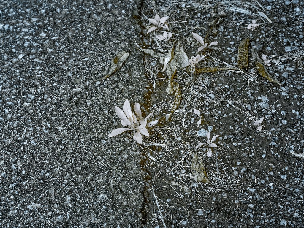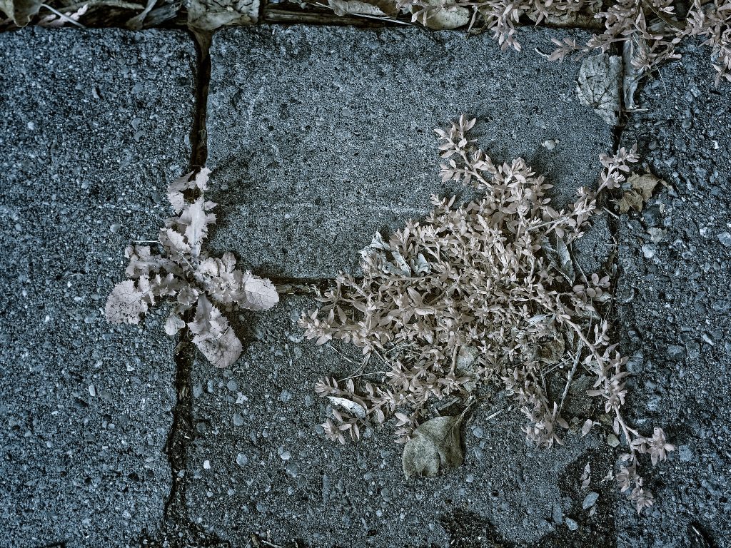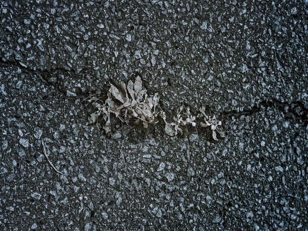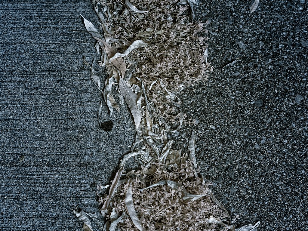 Their ongoing struggle to survive and stubborn tenacity, making their home in the non-spaces of cracks and crevices of impervious urban surfaces, ruptures the smooth polished superficiality of the urban and contemporary zeitgeist. A harsh life, ignored by the well-off, but a struggle no less grand than the romantic landscape photography trope of trees clinging precariously to sides of cliffs.