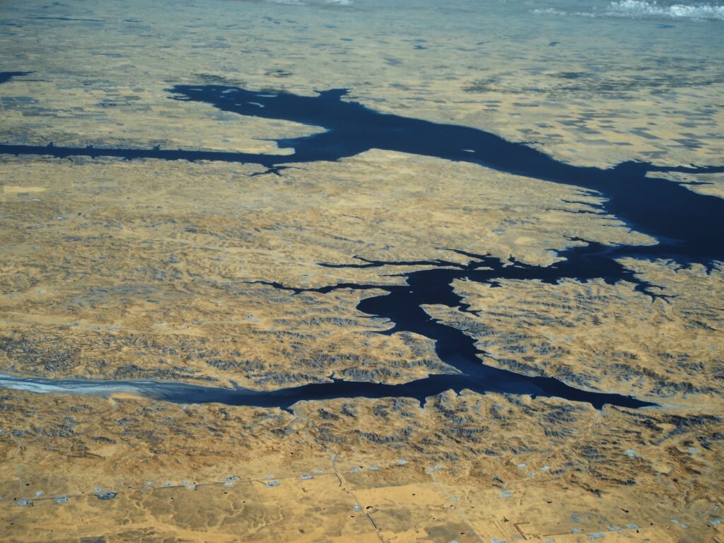 False Infrared images of abstract aerial landscapes reminiscent of splashed ink, doodles, hatching on paper – as they are etched onto the surface of the earth.